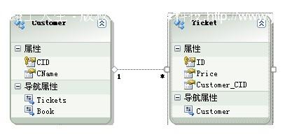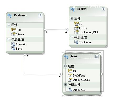并且在edmx模型中我们已经创建了两个实体。这里我们使用Customer和Ticket(由于最近在讲解影院售票系统)